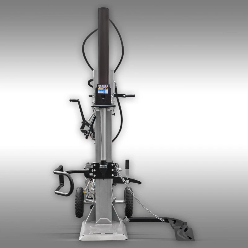 De houtkloofmachine staat op 2 groote luchtbanden en bevat een handvat / stuurstang en een extra transportwiel. Dankzij het transportwiel is het verplaatsen door een persoon mogelijk. De kloofcilinder is met kleine moeite op een hoogte van 1,90 meter af te zetten.